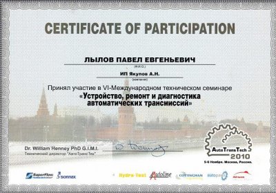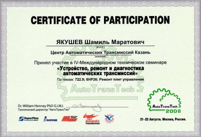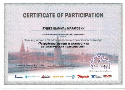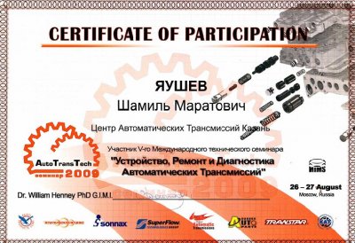 Все наши сотрудники постоянно повышают свою квалификацию, обучаясь на специализированных курсах по ремонту АКПП. Такой подход позволяет нам ремонтировать трансмиссии по самым современным методикам, рекомендованным заводом-изготовителем.